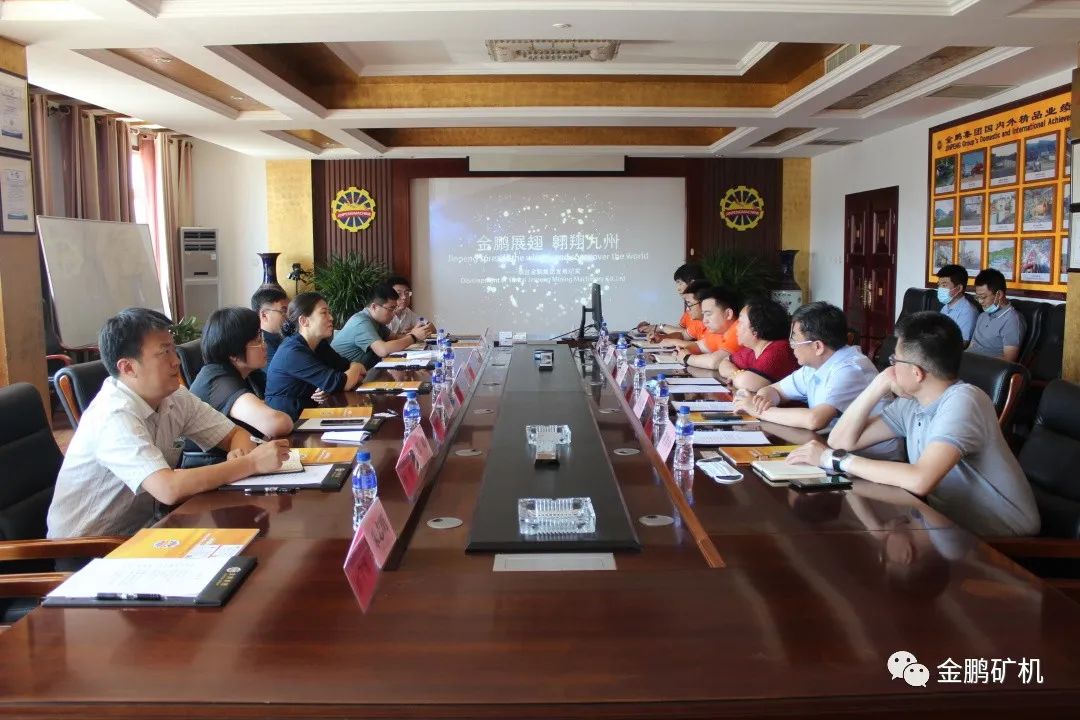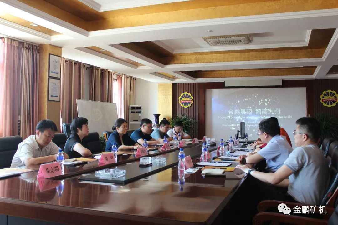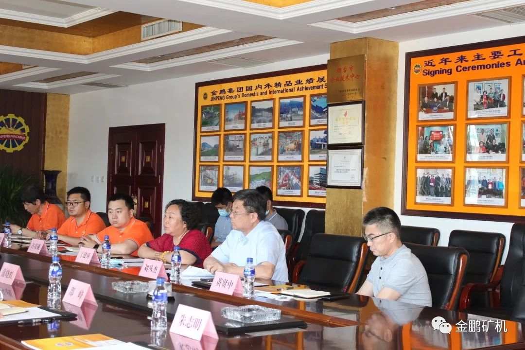 6月24日上午,煙臺市人民政府副市長隋子林率領市政府辦公室、市文化旅游局等多個政府部門負責同志及煙臺黃渤海新區管委負責人蒞臨煙臺金鵬礦業機械有限公司現場辦公,并檢查指導工作,聽取煙臺金鵬礦業機械有限公司董事長于建環簡要工作匯報后,對煙臺金鵬礦機成立十六年來取得的飛速發展成就和寶貴的發展經驗予以充分肯定和高度贊賞。隋子林副市長要求市政府和黃渤海新區相關部門全力幫助金鵬排解發展中的難題,助力金鵬發展再上新臺階。同時,希望煙臺金鵬繼續發揮全國礦山設備企業領頭羊的作用,為煙臺市高質量發展再立新功!圖為隋子林副市長(左排左三)與煙臺金鵬礦業機械有限公司董事長于建環(右排右三)正在進行親切交談。