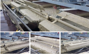 由于煤泥水入料點與濃縮機液面問存在lm 左右的落差,使得煤泥水進入濃縮機后會出現(xiàn)過度紊流狀態(tài);同時礦漿與管道盡頭內(nèi)壁產(chǎn)生的較大沖擊力,會破壞已經(jīng)形成的煤泥絮團,使得普通濃縮機的沉降效率下降。